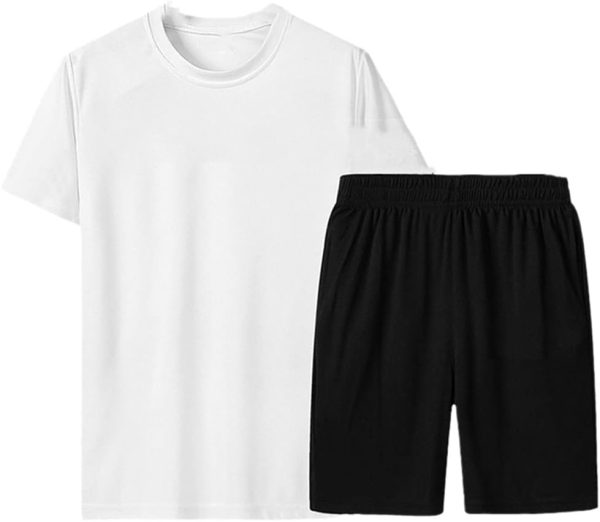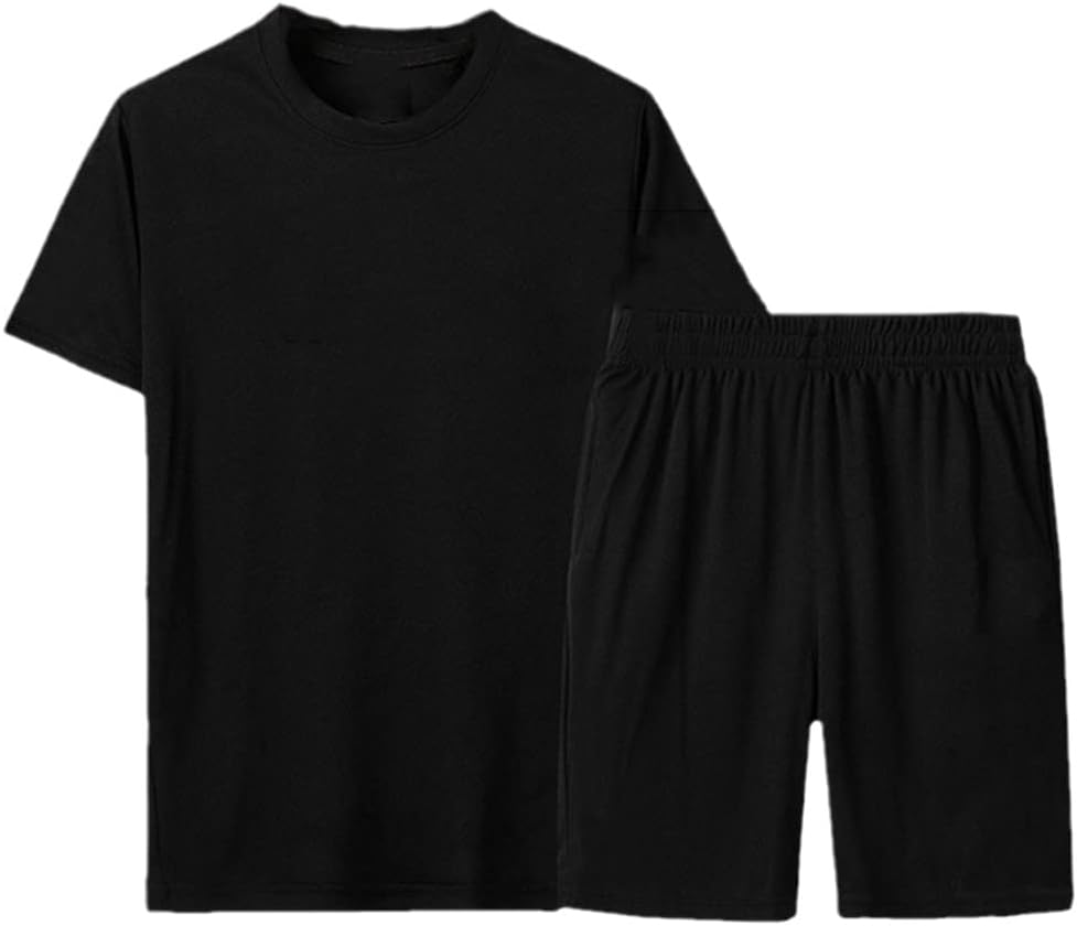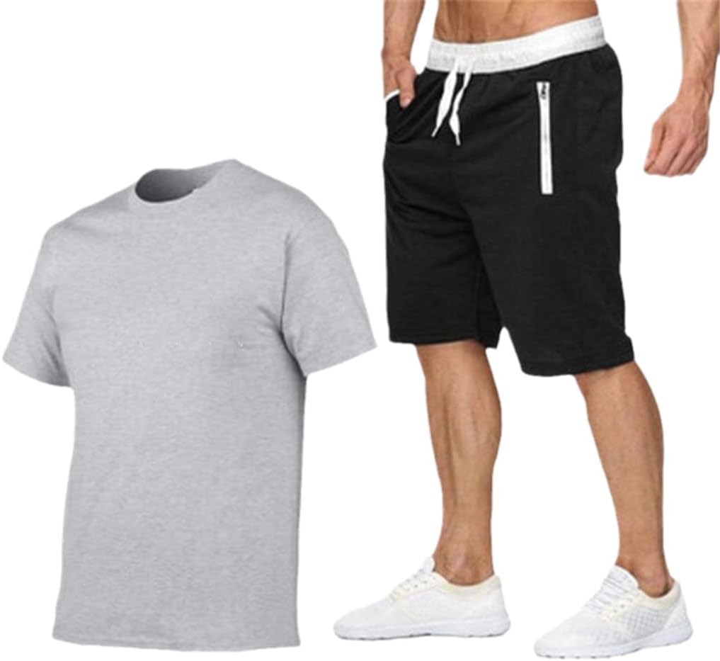 Mens Cotton Short Sleeve T-Shirt + Shorts Mens Casual Sportswear Fitness Jogging Suit